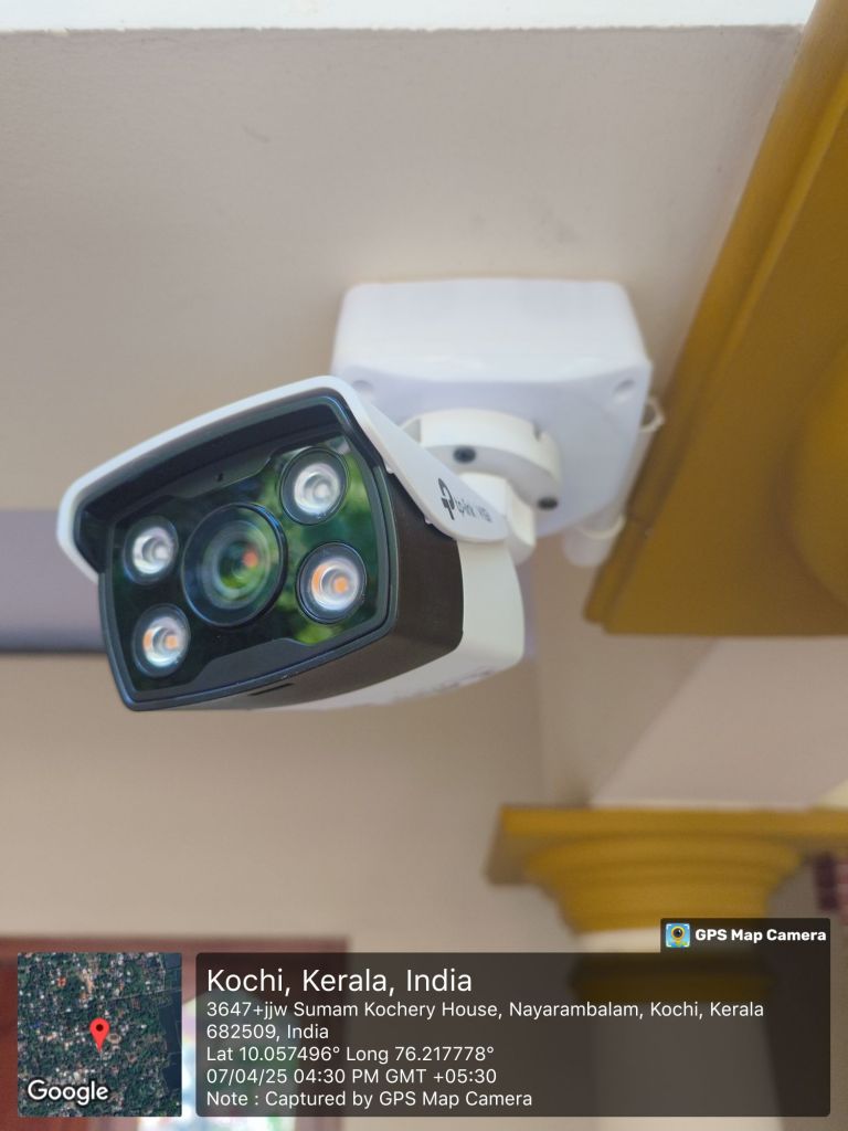 Successfully completed TP-Link IP camera installation at 3647+jjw Sumam Kochery House, Nayarambalam, Kochi, Kerala 682509. This setup includes multiple high-definition surveillance cameras covering the driveway, front yard, garden area, entrance, and vehicle parking zone. Crystal-clear footage and real-time remote monitoring now ensure round-the-clock security for the premises.